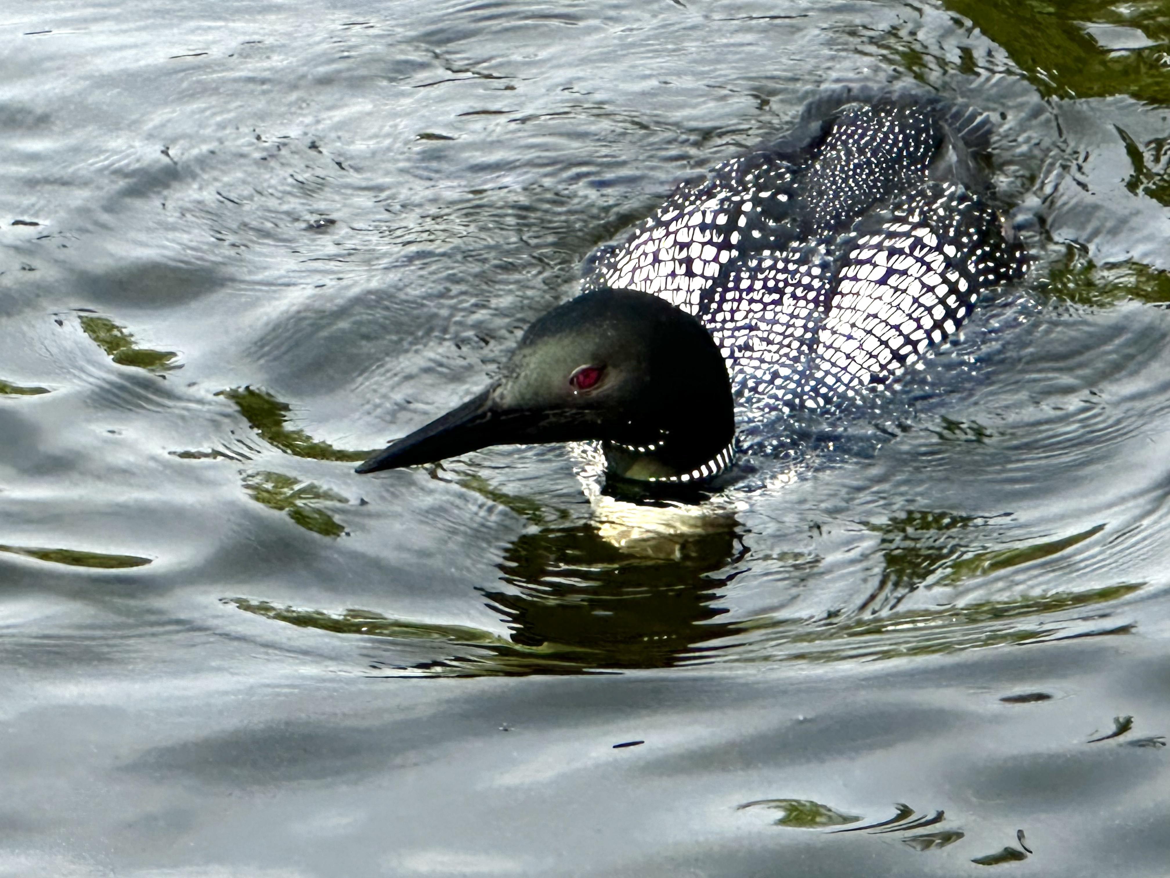 NOTE: All loon observation was done with the strictest respect for these creatures. They are curious and will swim up to docks, which often allowed me to get close to them for a time before letting them get back to their business. If you are on the water, please stay at least 150-200 feet away from loons. If you like to fish, please do not use lead tackle, and make sure you take all line and lures with you. For more information on observing loons safely, see this article from the American Birding Association: